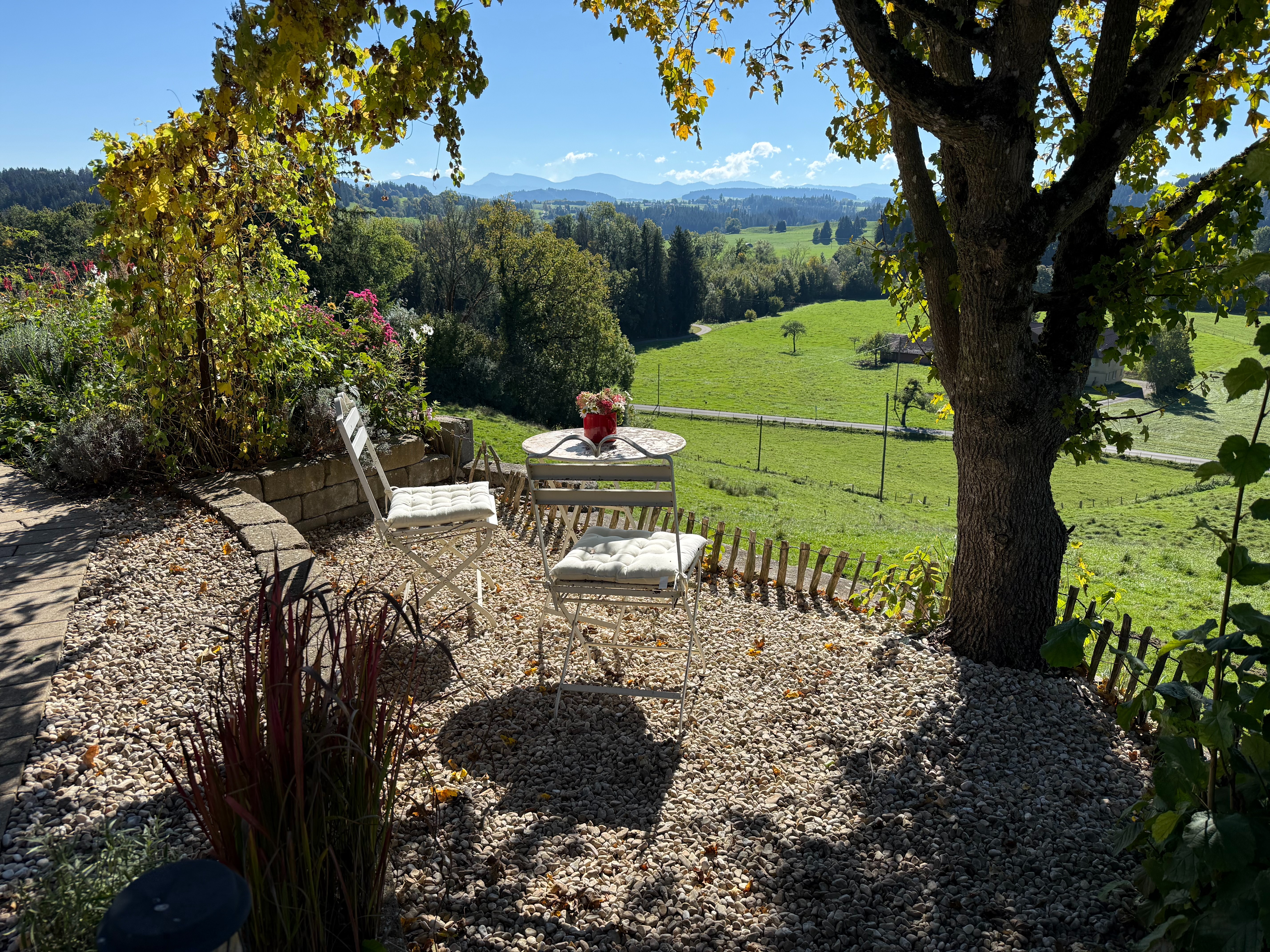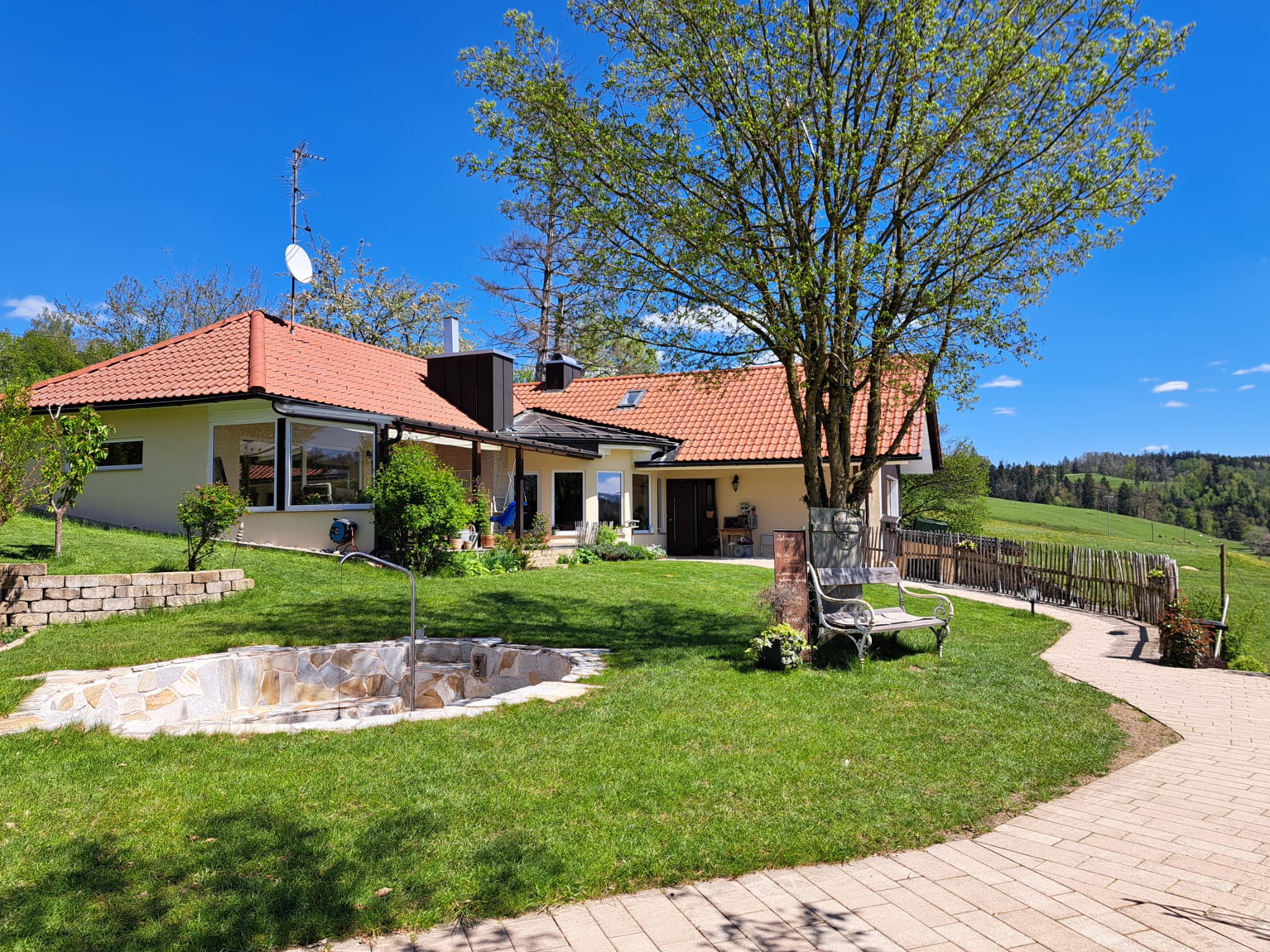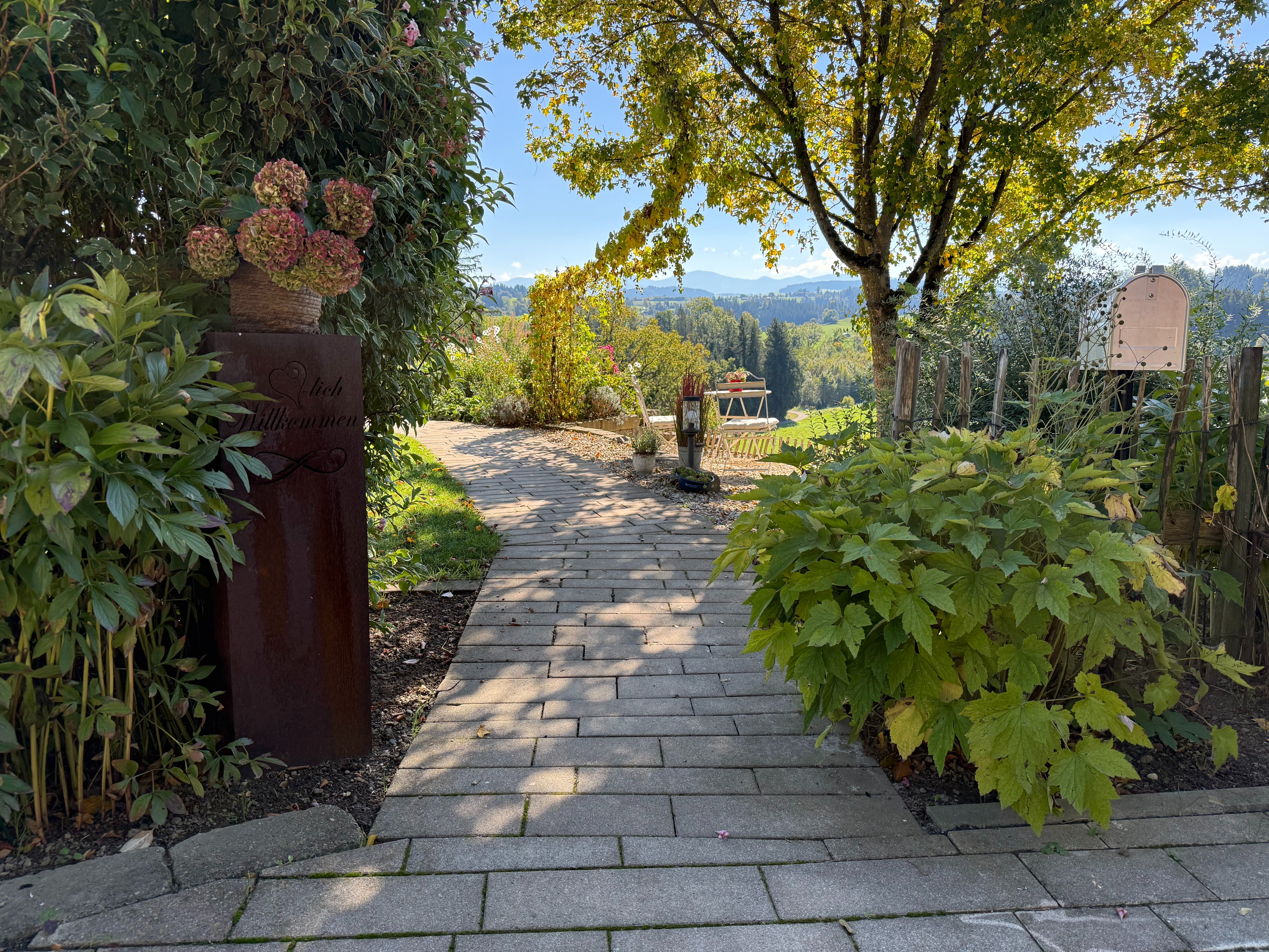 Der wunderschöne, liebevoll angelegte Garten mit Grillstelle lädt zum Verweilen im Freien bei perfekter Aussicht ein.