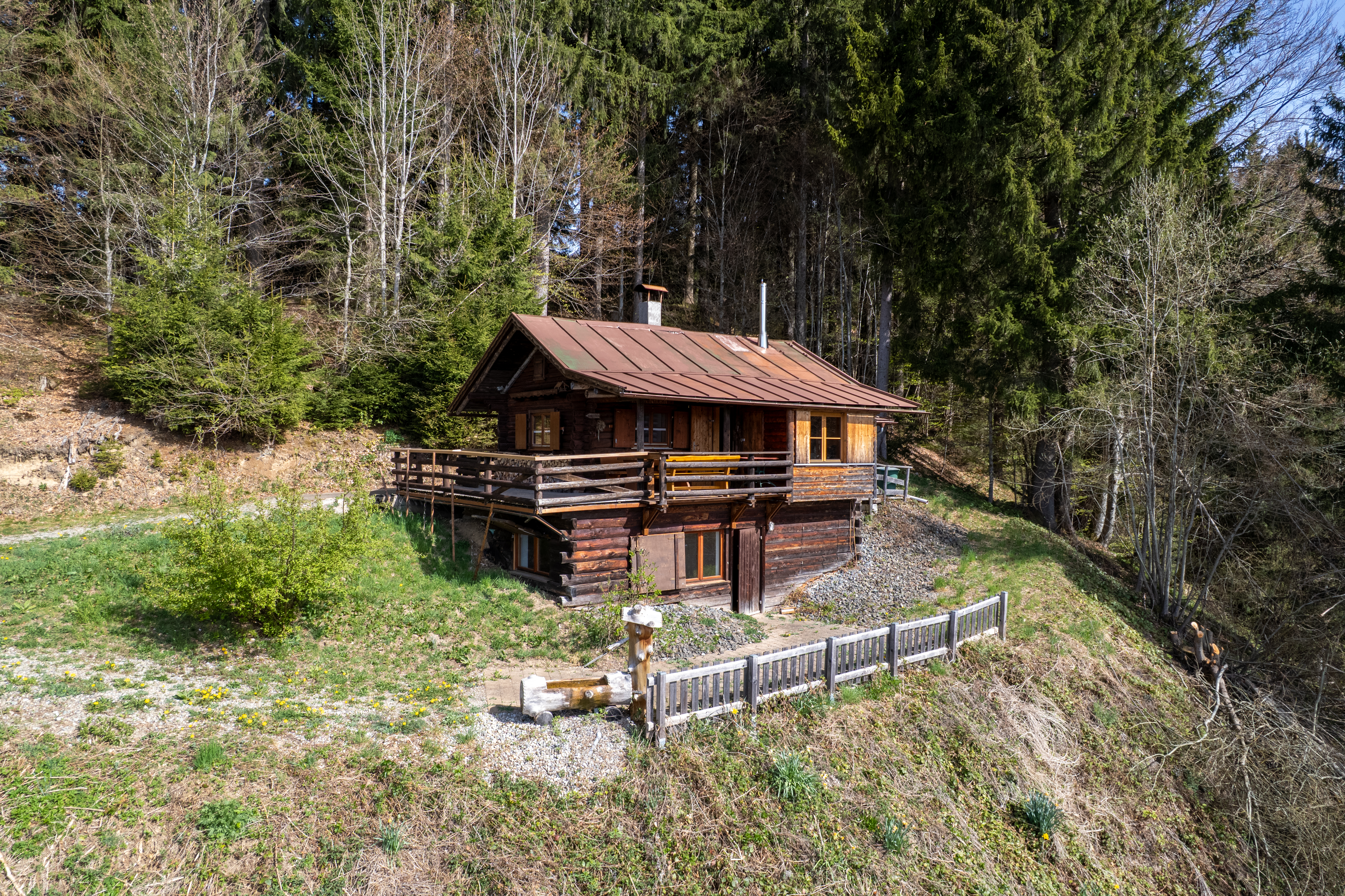 Mitten im Naturschutzgebiet und in absoluter sonniger und ruhiger Alleinlage befindet sich diese Berghütte auf einem Grundstück über 3 ha Wald und in einer Höhe von 1.050 m über NN.