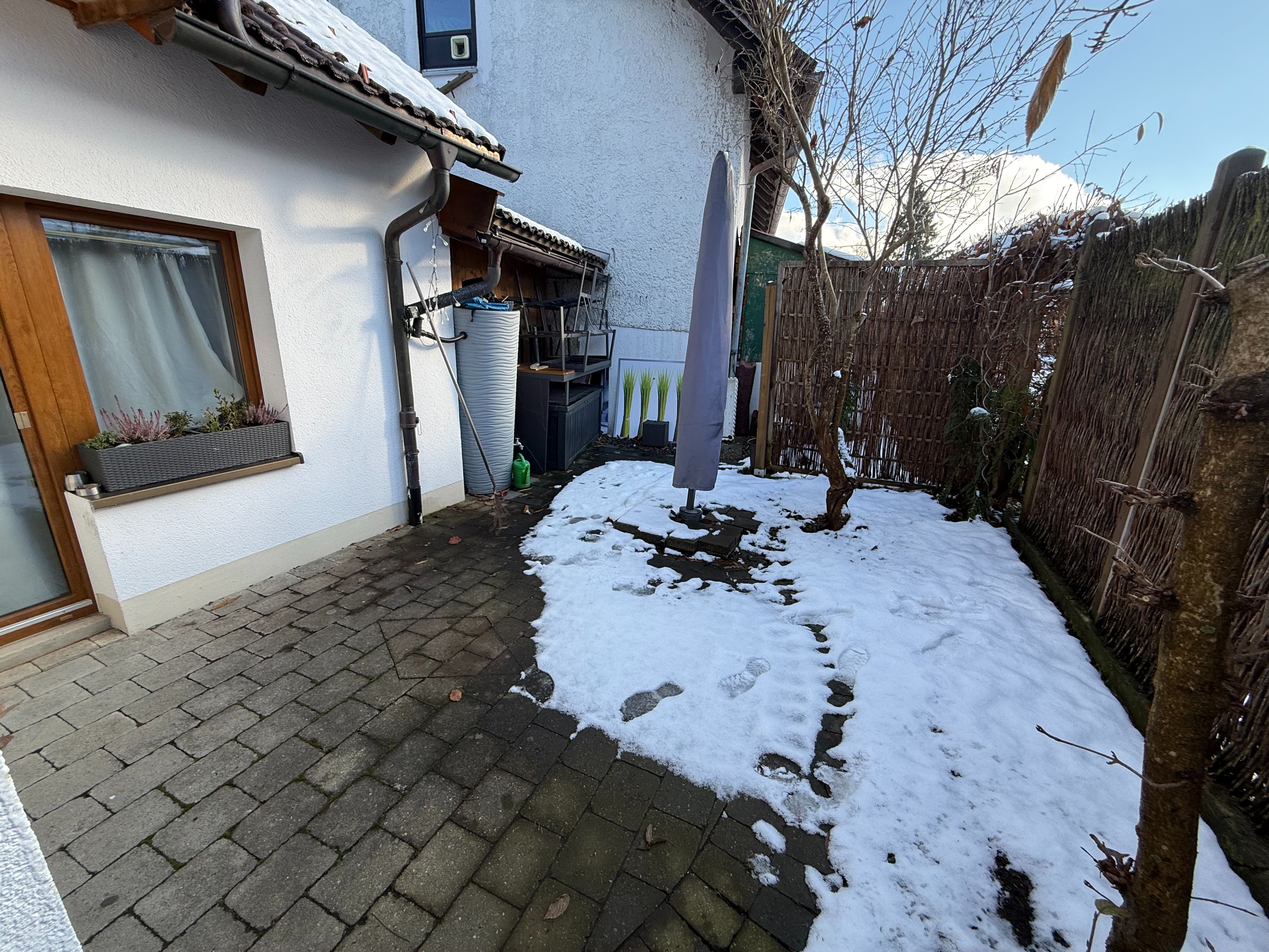 – kleiner Garten; Terrasse (Pflaster und Rollierung wurde erneuert); Gartenschuppen zum Verstauen gemeinschaftlich mit Nachbar