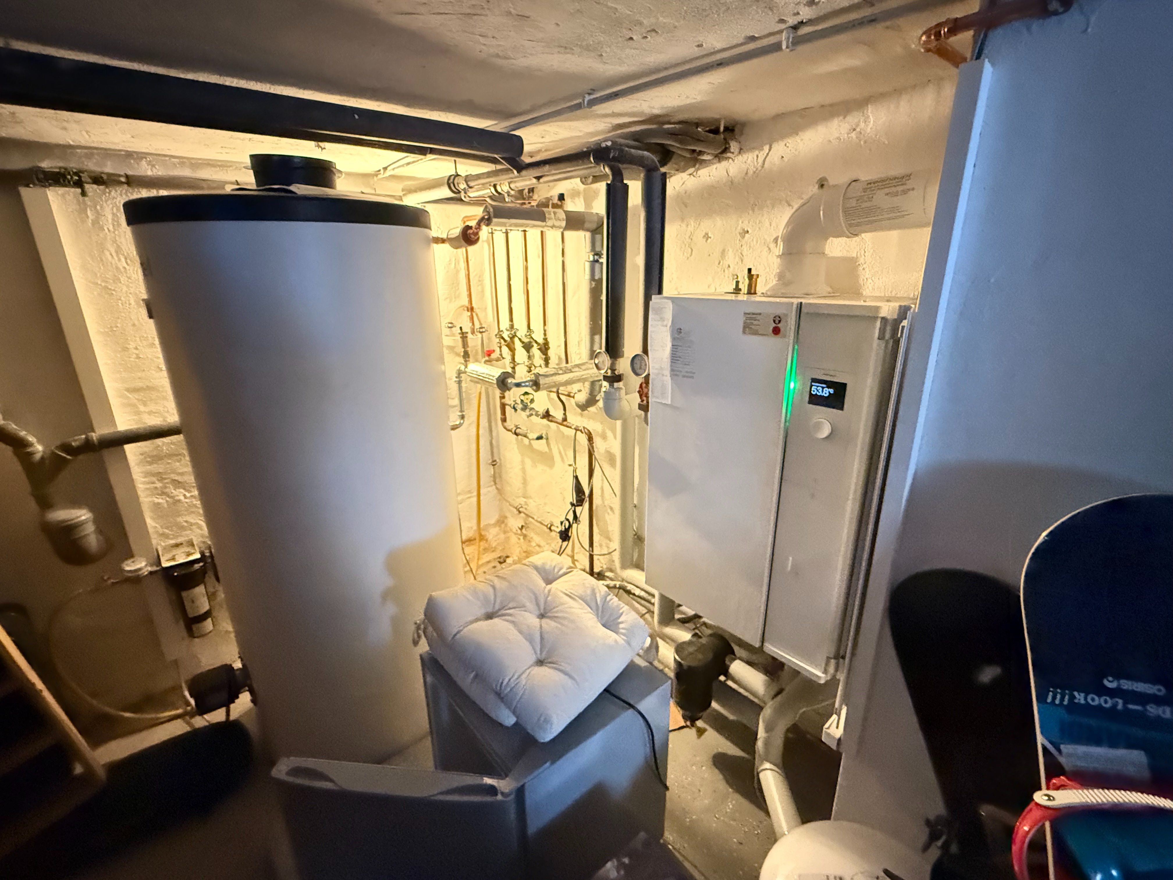 Heiztechnikraum mit Gasheizung und Warmwasserboiler.