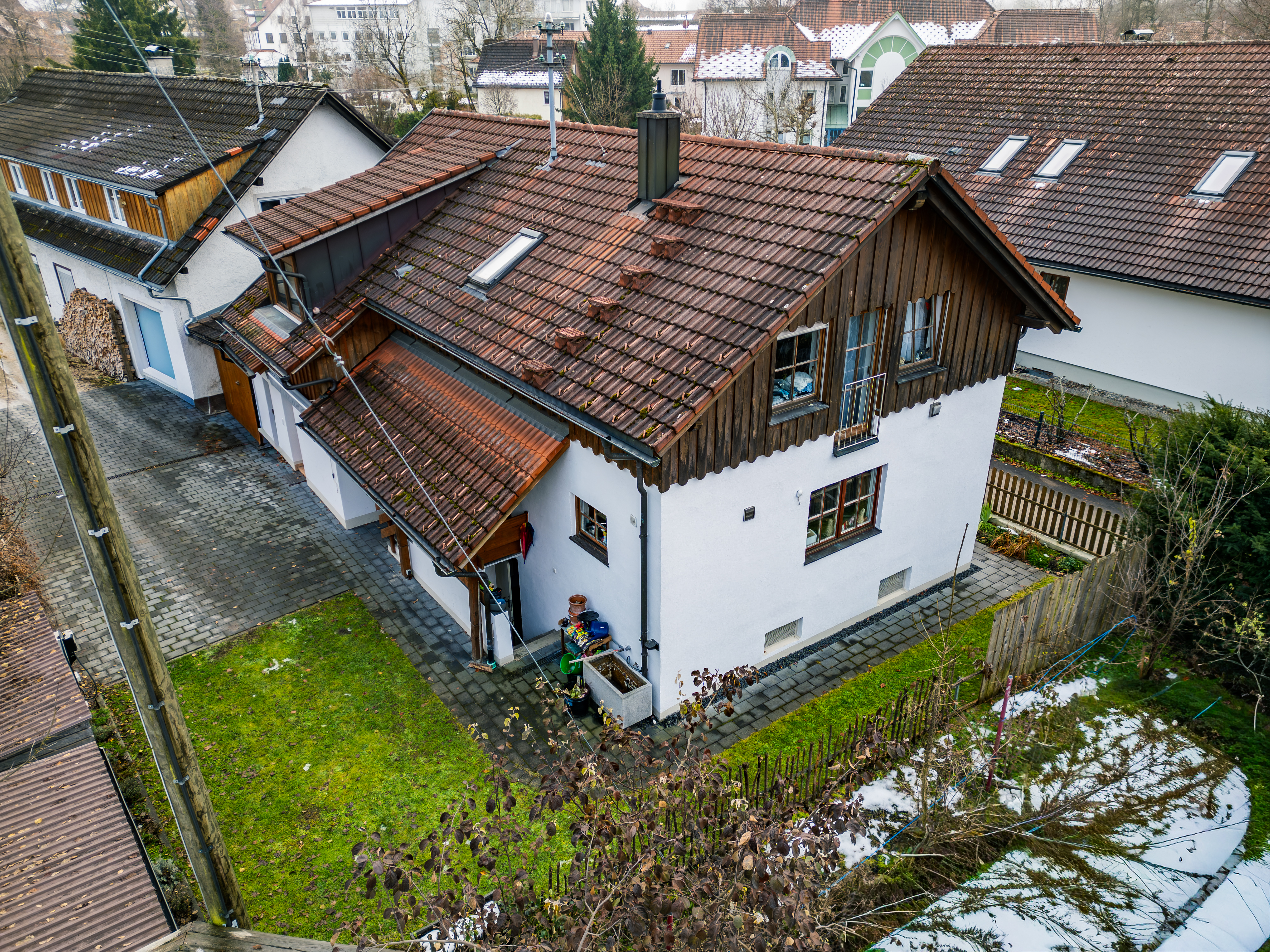 – Außenfassade und Holzfenster außen neu gestrichen (2021); teils Holzverkleidung an Außenfassade