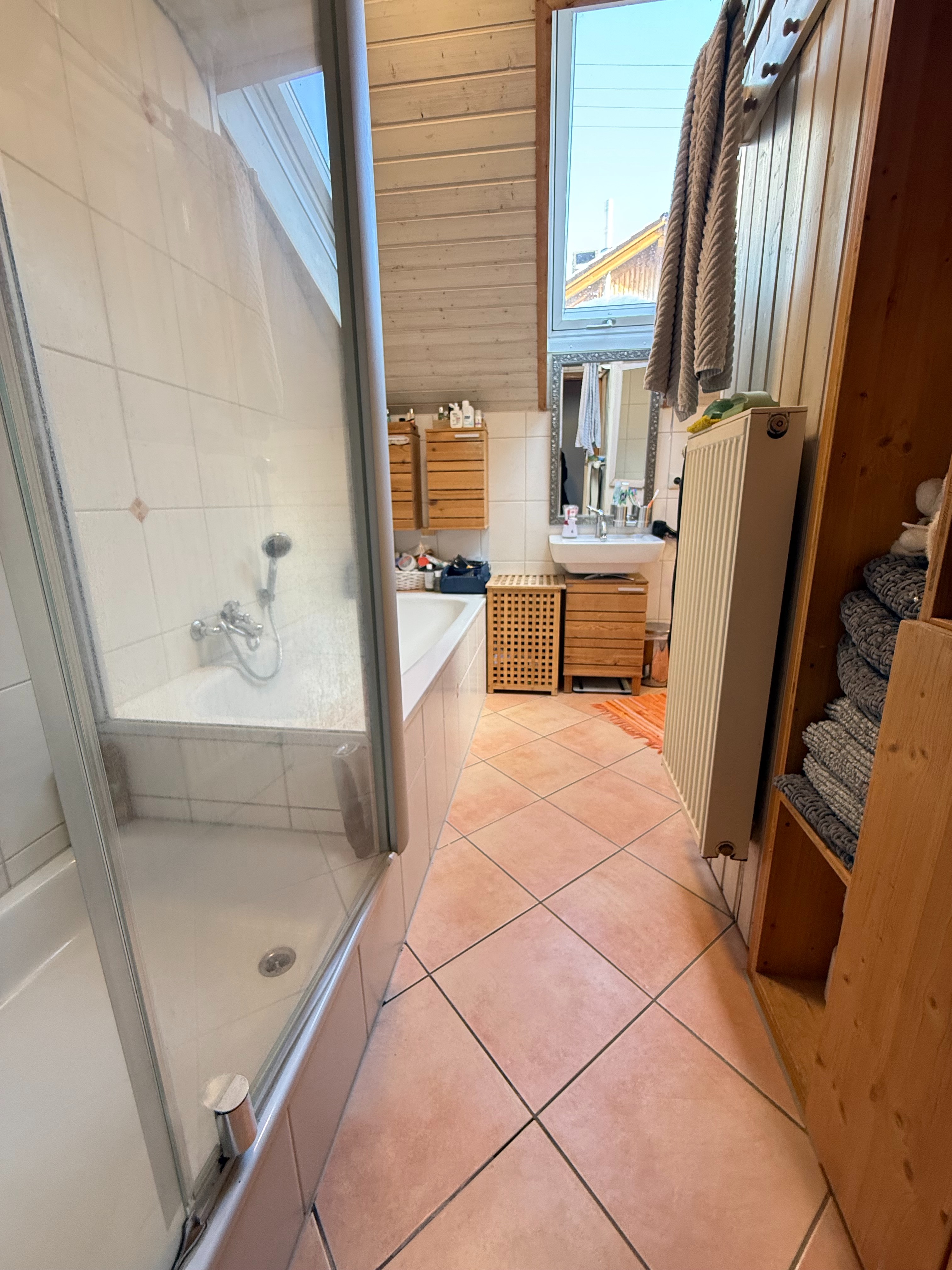 - Ausstattung des Bades Badewanne, Dusche, Fenster
