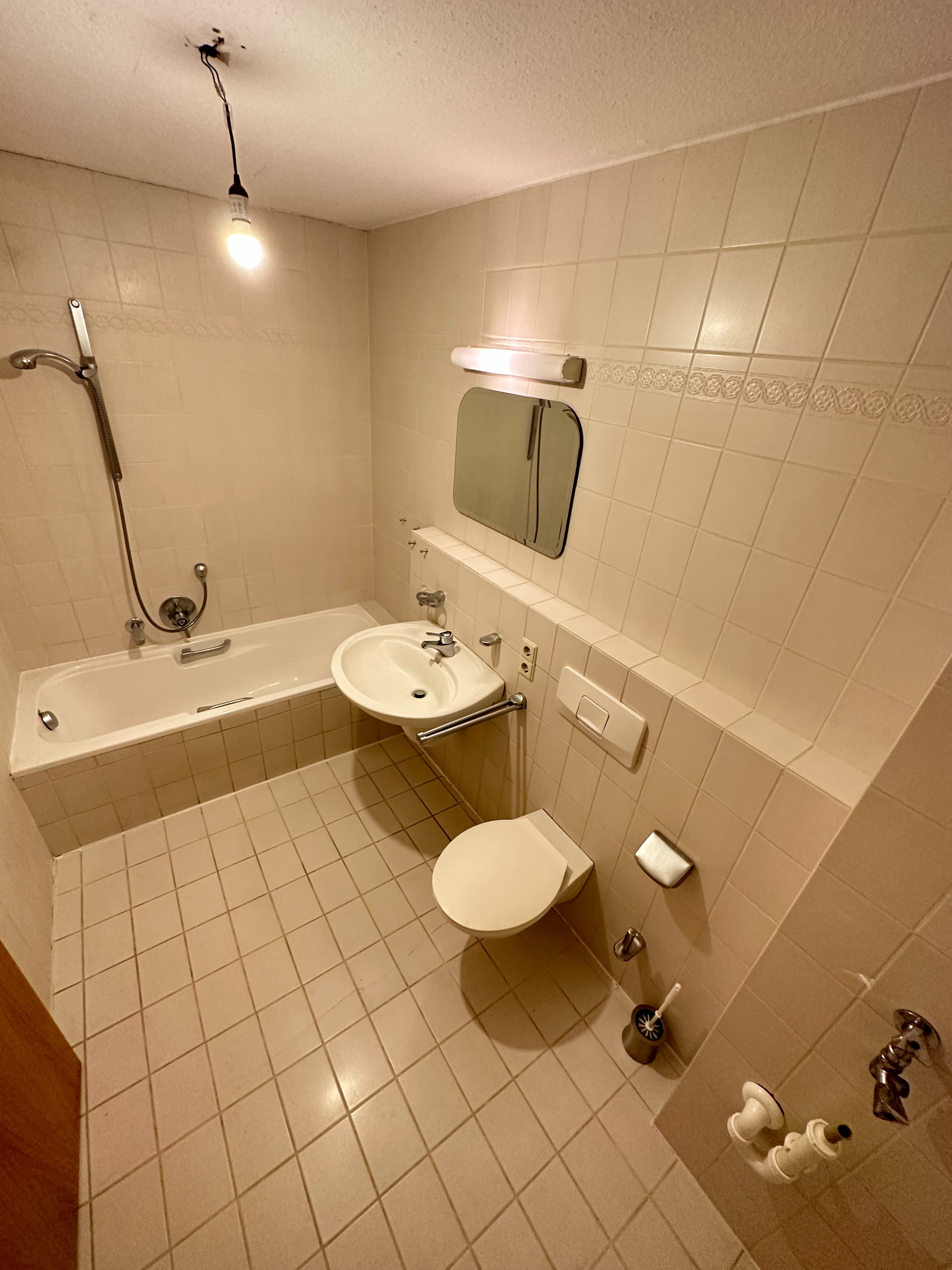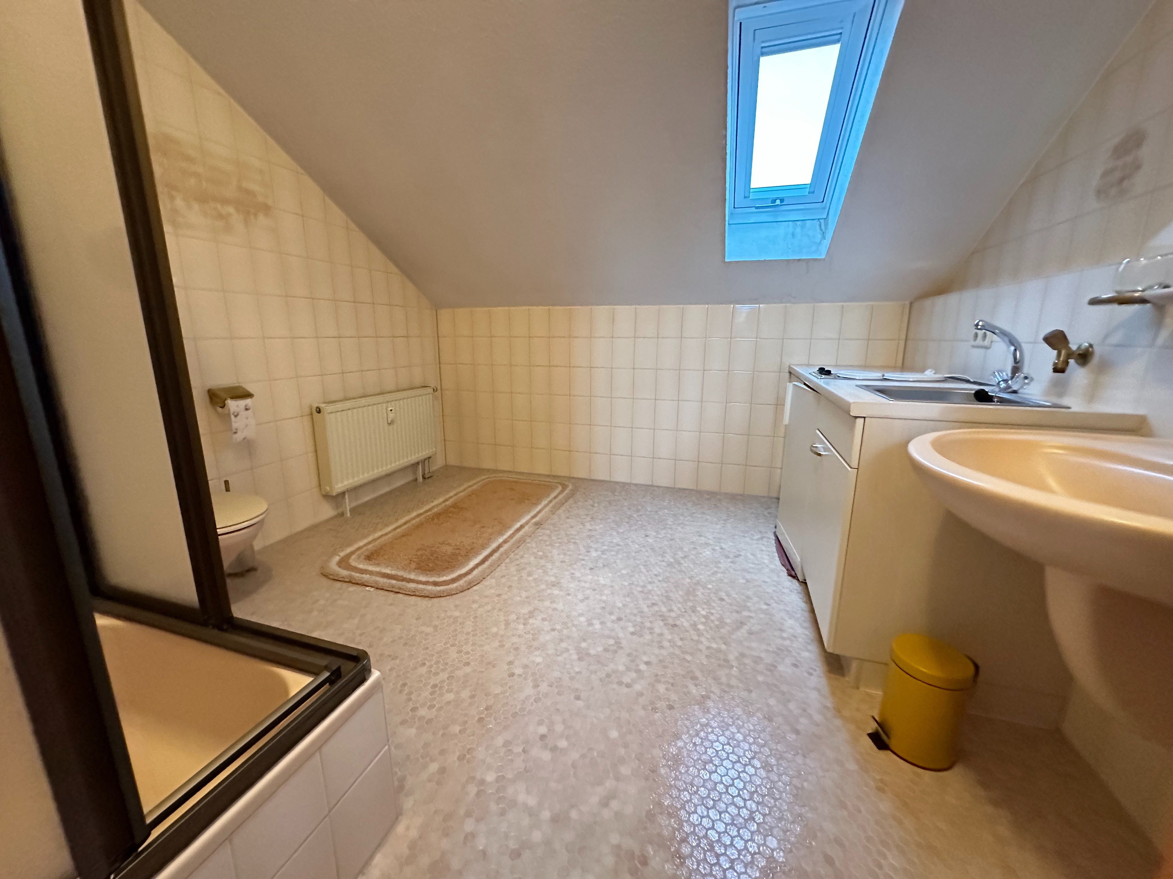 - Ausstattung des Bades Badewanne, Dusche, Fenster